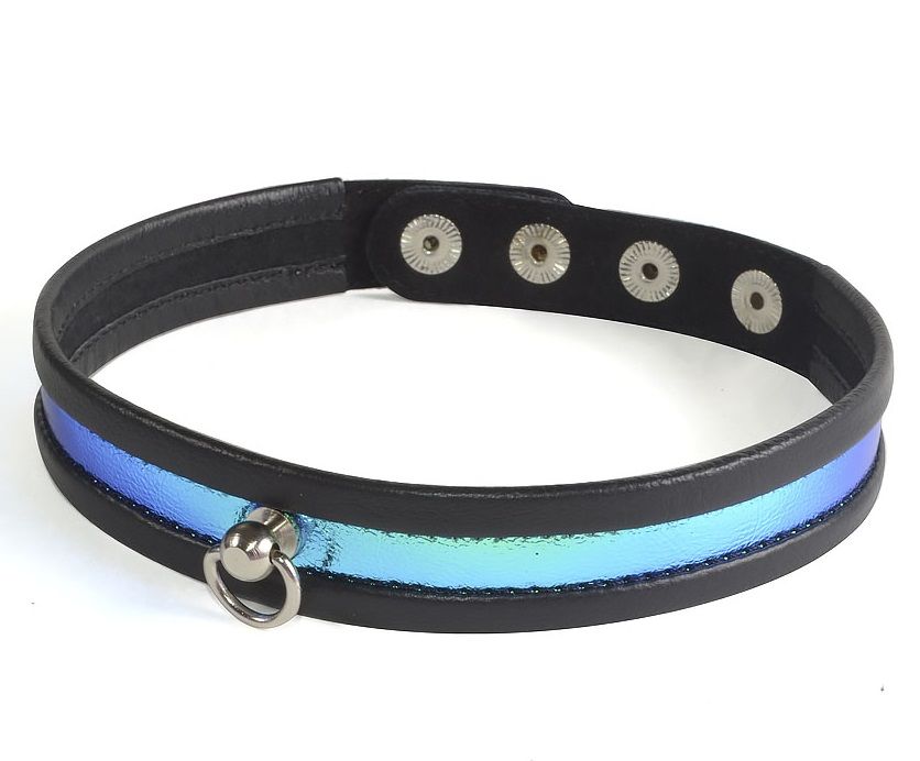 Этот ошейник - идеальный выбор для тех, кто ищет что-то стильное и оригинальное для своего питомца. Он выполнен в сине-черном цвете и украшен голографическим узором, который меняет свой оттенок в зависимости от угла обзора.