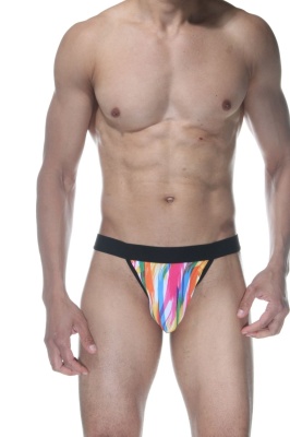Мужские трусы-стринги с принтом в виде разноцветных мазков кисти