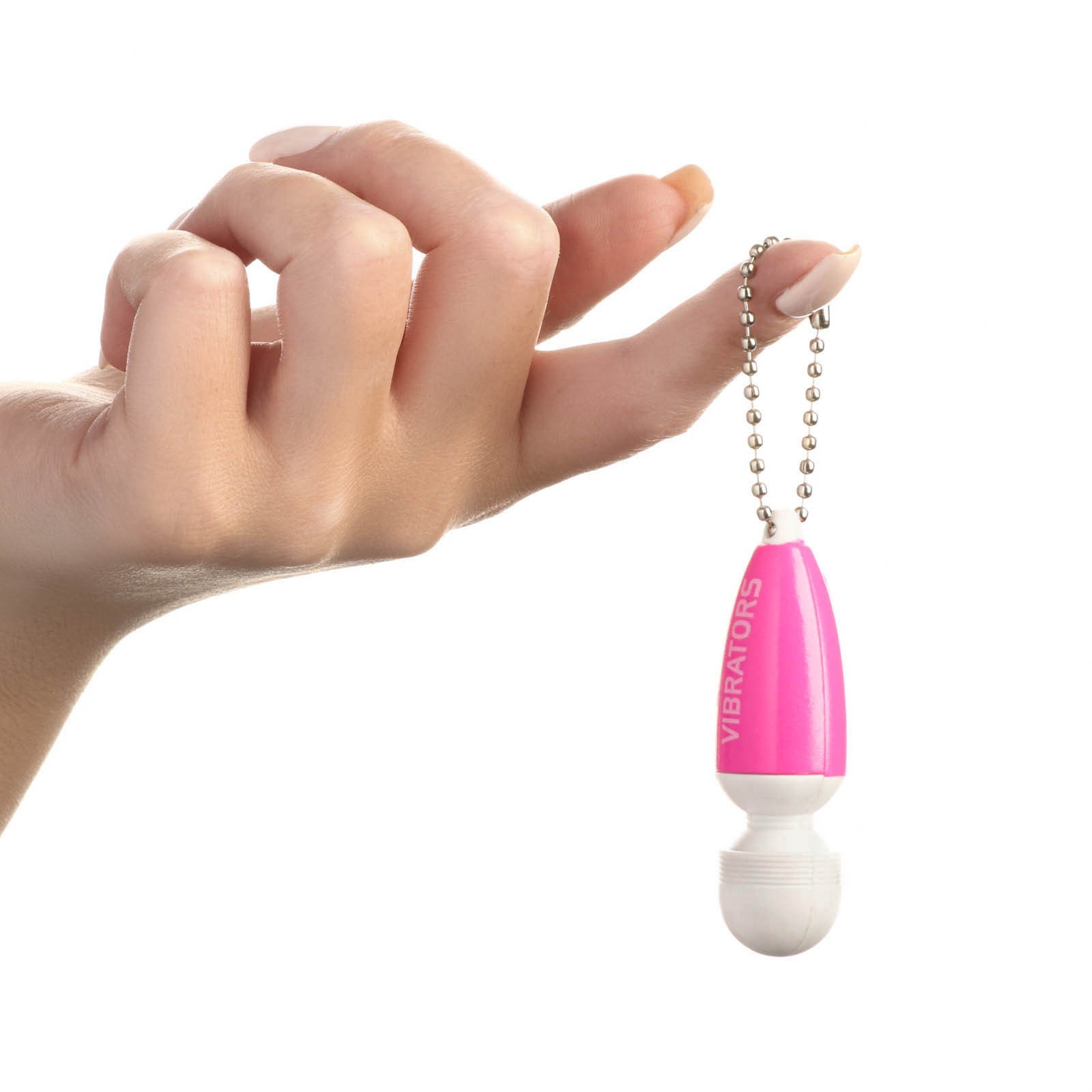 Бело-розовый вибратор-брелок. Прибор позволит разнообразить половую жизнь.