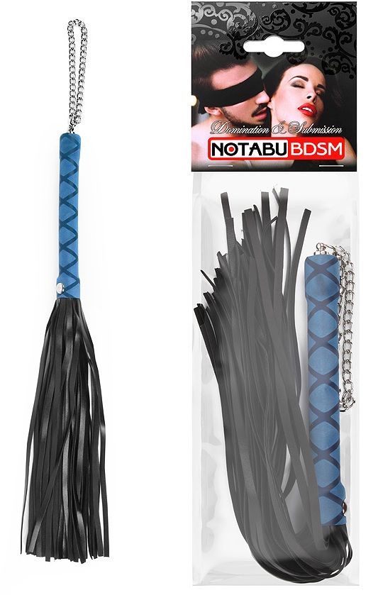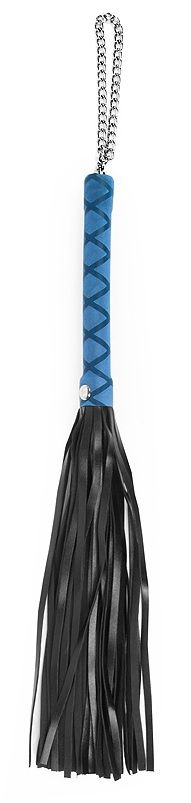 Черная многохвостая плеть-флоггер с синей ручкой - 40 см - это стильный и эффективный инструмент для любителей бдсм-игр и ролевых сцен.