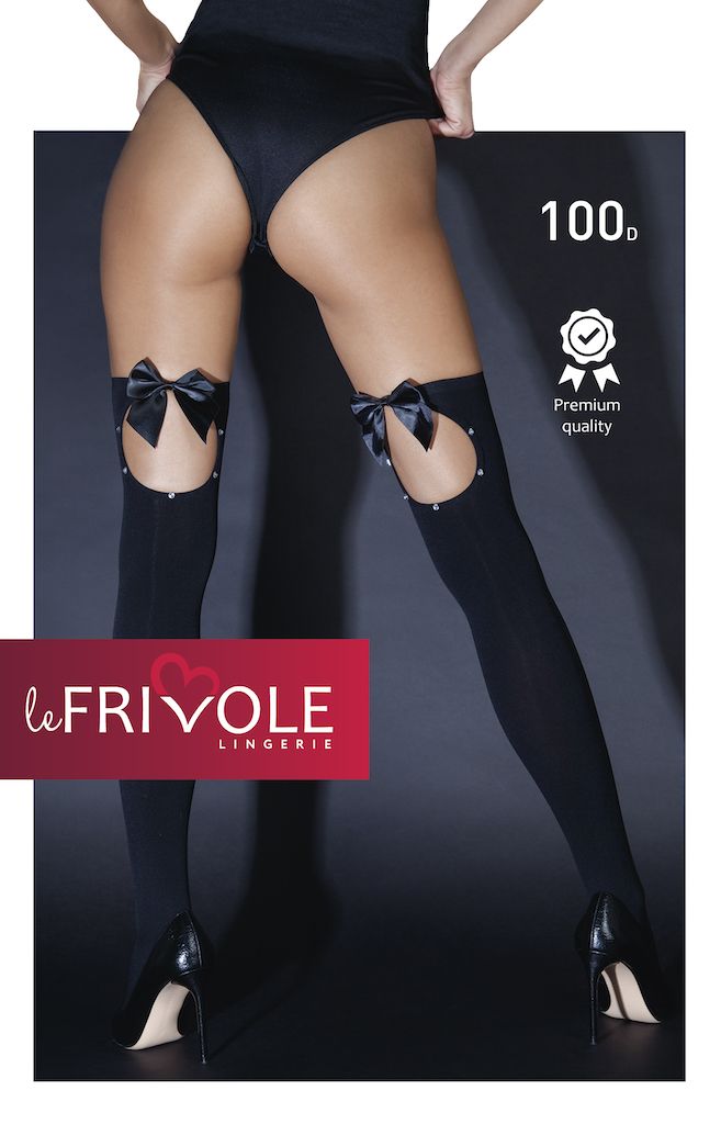 Эти чулки - идеальный выбор для тех, кто хочет добавить немного игривости и роскоши своему образу. Они выполнены из высококачественных материалов и украшены красивыми бантиками и стразами сзади, что делает их не только красивыми, но и уникальными.