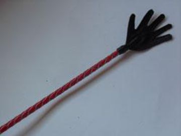 Длинный плетённый стек с наконечником-ладошкой и красной рукоятью - 85 см.