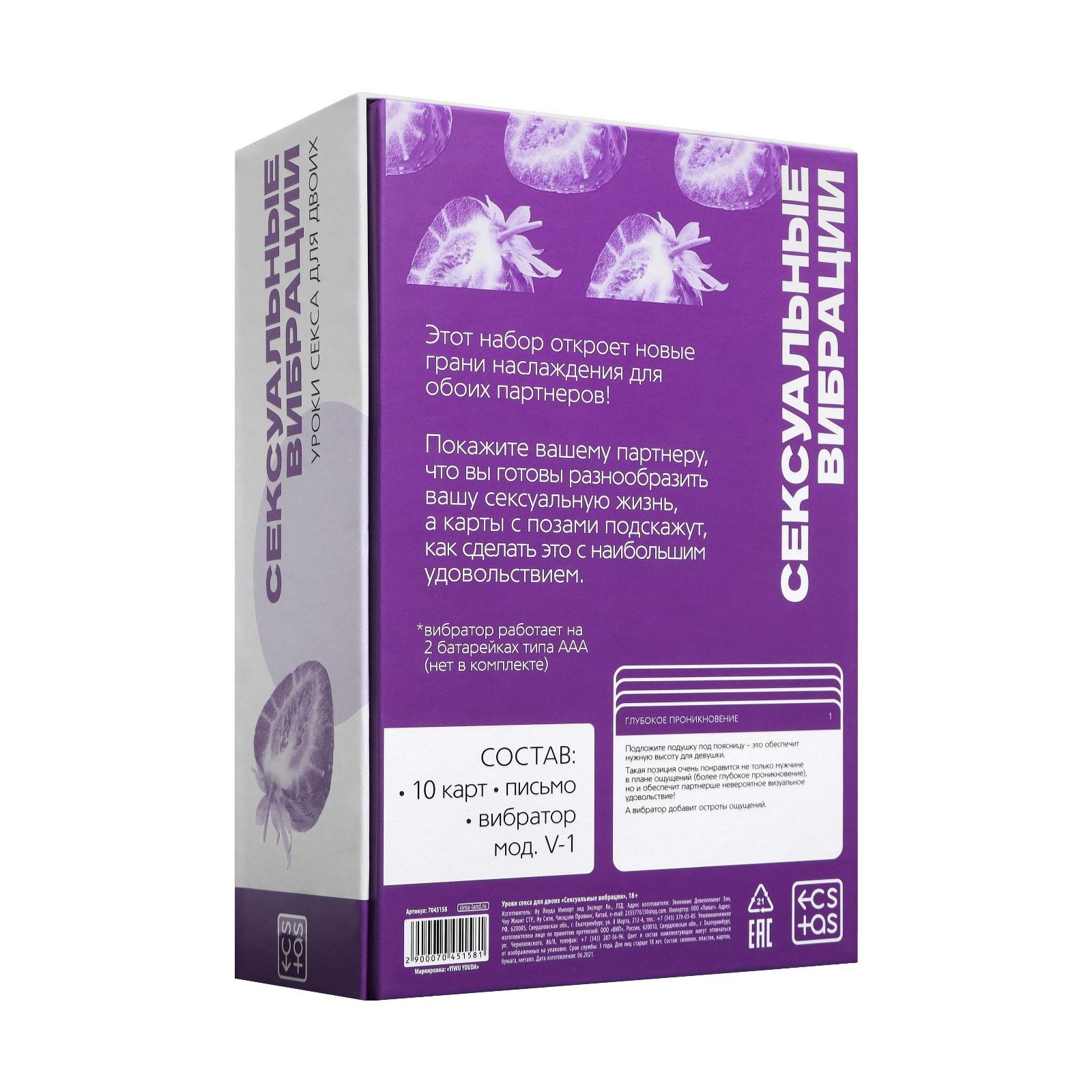 Откройтесь миру ярких эмоций и позитивных вибраций. Крутой способ бороться со стрессом, улучшить эмоциональное состояние и тревожность – маленький жужжащий прибор, который уже стал любимым среди девушек. Вибратор укрепит отношения с партнером, добавит перчинки и новых эмоций в отношения. «Сексуальные вибрации» – набор из 10 техник, которые можно использовать во время прелюдий или секса. Осваивайте теорию и действуйте на практике ради восхитительного результата. Отпустите сомнения и страхи, расслабьтесь, почувствуйте партнера – и тогда интимная жизнь засияет новыми красками! В комплекте: вибратор, 10 карт.