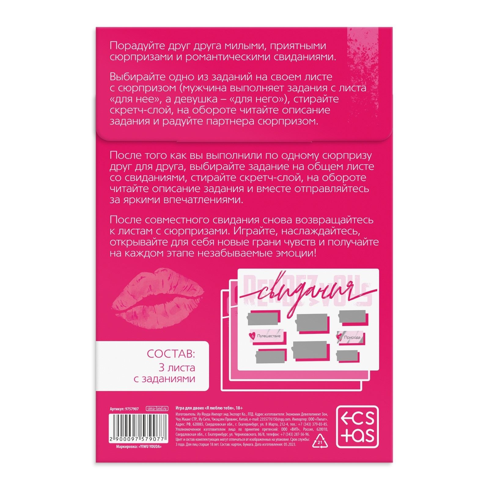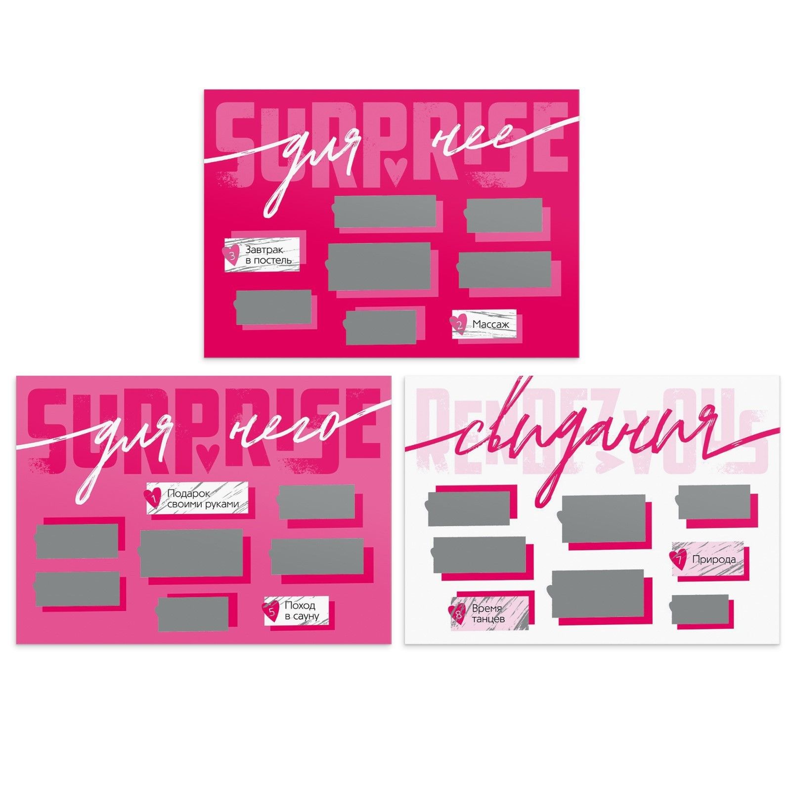Порадуйте друг друга милыми свиданиями и приятными сюрпризами. Перед вами романтические задания, которые подарят каждому искренние и незабываемые эмоции. Наслаждайтесь друг другом, играйте, открывайте новые грани чувств и вместе отправляйтесь за яркими впечатлениями! Как пользоваться? Выбирайте одно из заданий: «для него» и «для нее», стирайте скретч-слой и выполняйте написанное. В комплекте: 3 листа с заданиями.