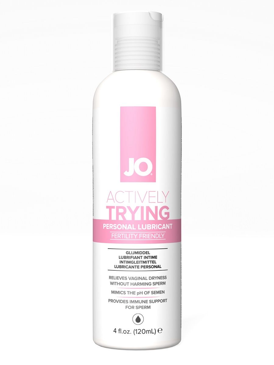 JO Actively Trying – лубрикант на водной основе, создающий здоровую среду для сперматозоидов, оптимизирующий уровень pH, имитирующий щелочной баланс семенной жидкости и фертильной цервикальной слизи. Имеет идеальную вязкость. Смазка обеспечивает комфортное нежное скольжение без липкости. Позволяет свободно смешиваться мужским и женским выделениям без воздействия препятствующих элементов, помогая сперматозоидам завершить путь к оплодотворению яйцеклетки и делая близость более чувственной и яркой. Помогает справиться с вагинальной сухостью без вреда для спермы.