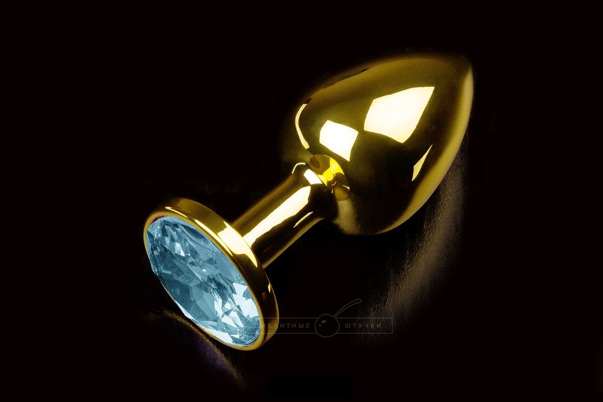 Маленькая золотистая анальная пробка с круглым кончиком и голубым кристаллом - 7 см. – это идеальный выбор для тех, кто хочет попробовать что-то новое и уникальное в своей сексуальной жизни.