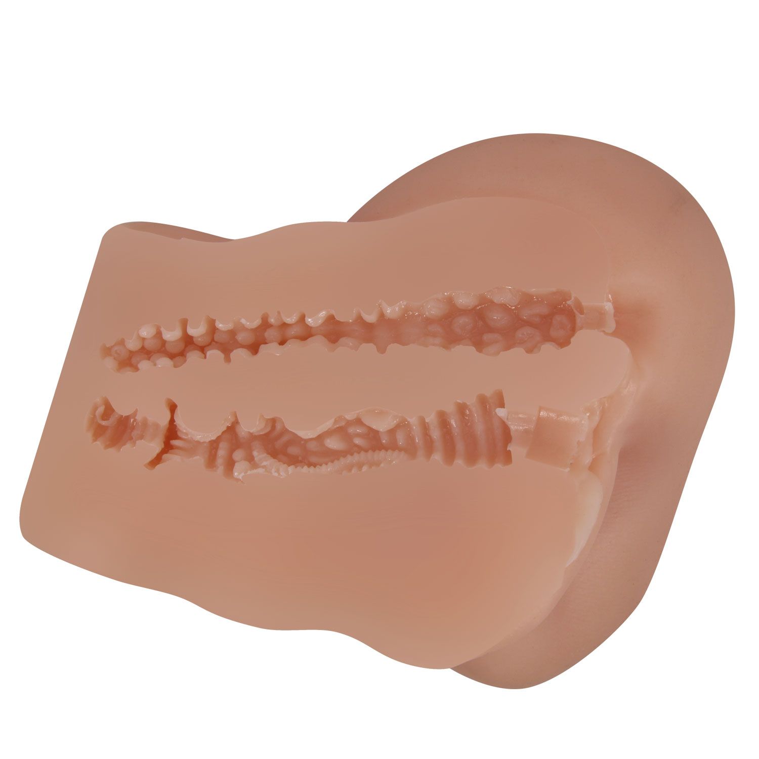 Мастурбатор в виде вагины с вибрацией. Имеет два отверстия. В комплекте идет виброяйцо с выносным пультом управления. Режим вибрации регулируется с помощью колесика. Размеры - 20,8х14,7х13,8 см.