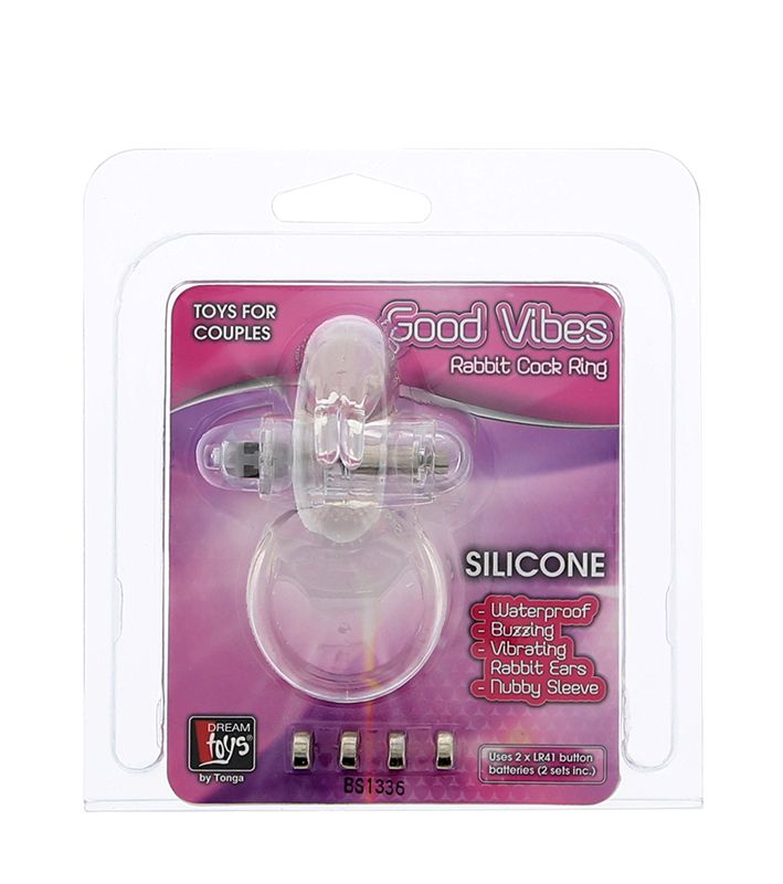 Прозрачное эрекционное кольцо с виброэлементом GOOD VIBES COCKRING RABBIT. Водонепроницаемое. Батарейки в комплекте.