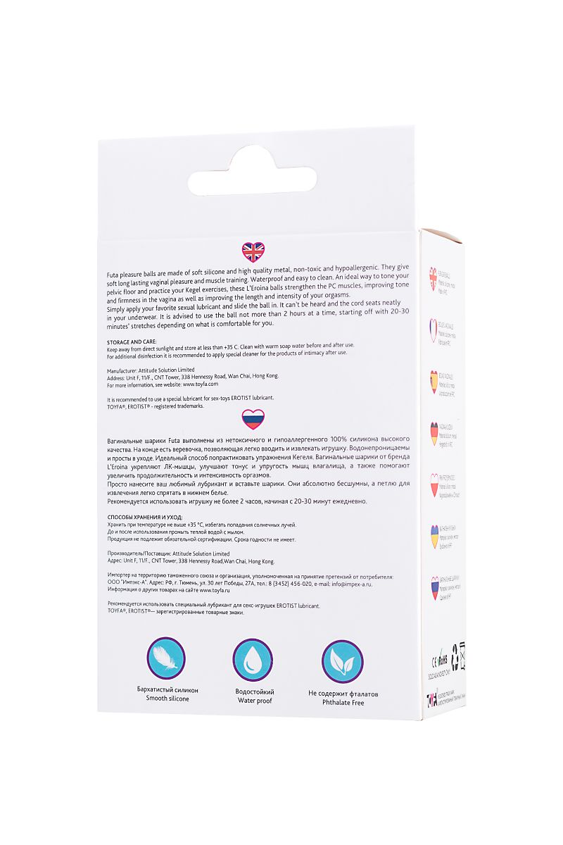 Эти шарики изготовлены из высококачественного медицинского силикона, который абсолютно безопасен для использования. Они имеют розовый цвет, который придает им женственность и привлекательность.