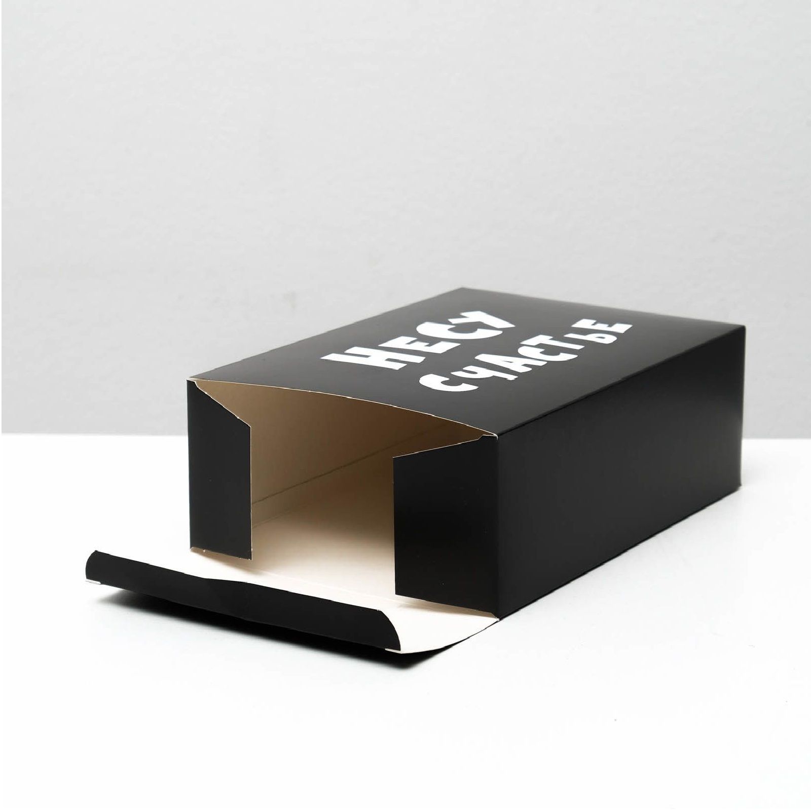 Дизайн коробки "Несу счастье" выполнен с любовью и вниманием к деталям. Яркая и красочная графика наружной поверхности создает праздничное настроение и привлекает внимание. Внутри коробки также есть место для написания пожеланий или личных слов, что делает подарок еще более индивидуальным.