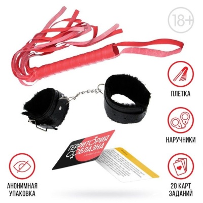 Набор для двоих «Территория соблазна»: карты, наручники, плетка