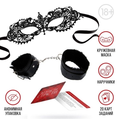 Набор для двоих «Во власти страсти»: карты, наручники и маска