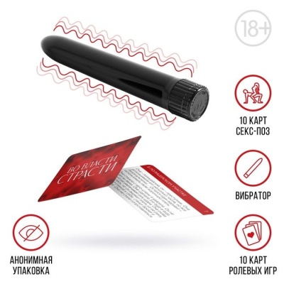 Набор для двоих «Во власти страсти»: черный вибратор и 20 карт