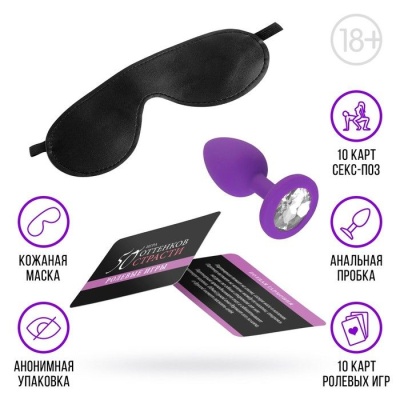 Набор для двоих «50 оттенков страсти»: карты, анальная пробка и маска