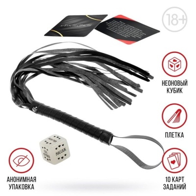 Эротический набор «Во власти страсти»: плеть, кубик и карты