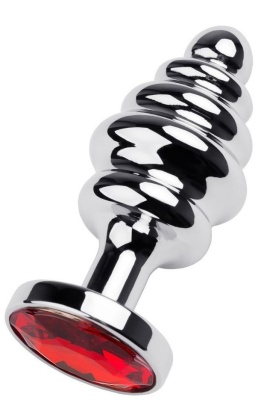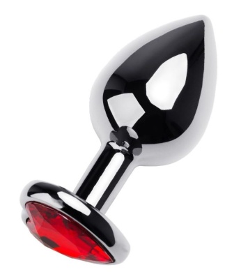 Маленькая коническая серебристая анальная пробка с красным кристаллом - 7 см.